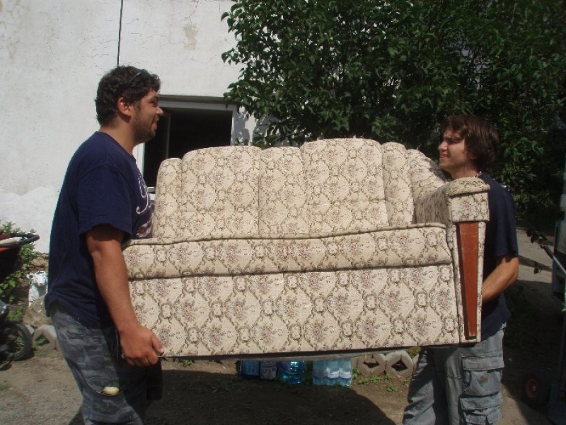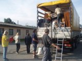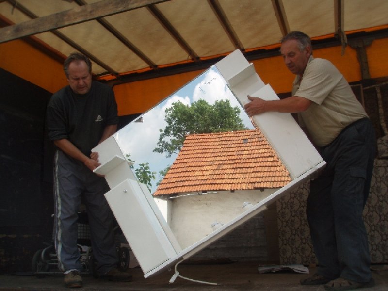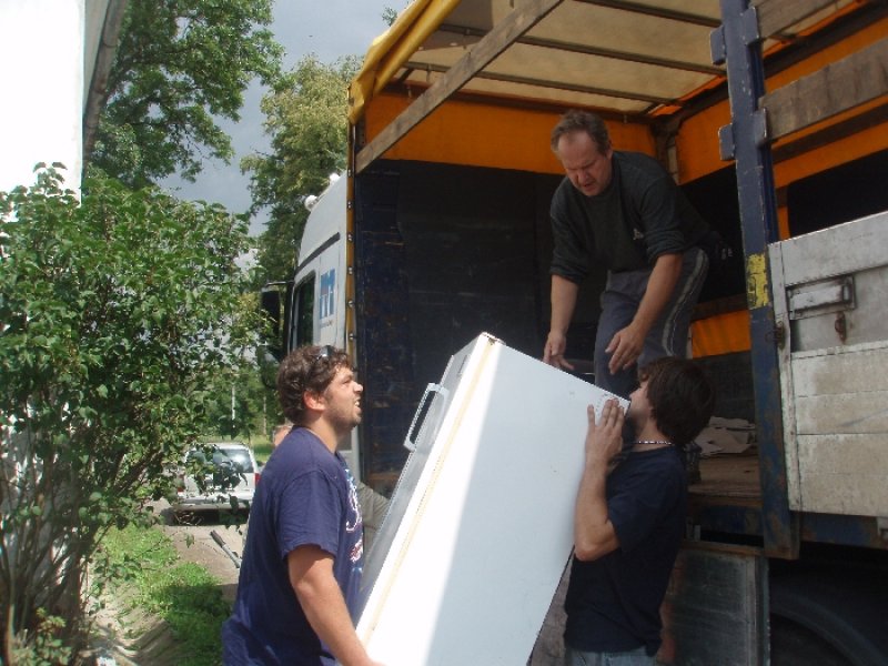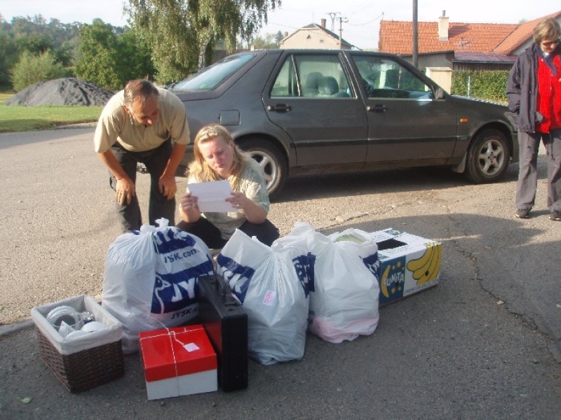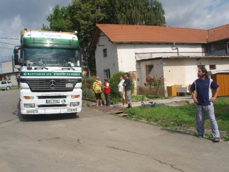 Obrázky z předávání nábytku zaplaveným lidem z Jeseníku nad Odrou.