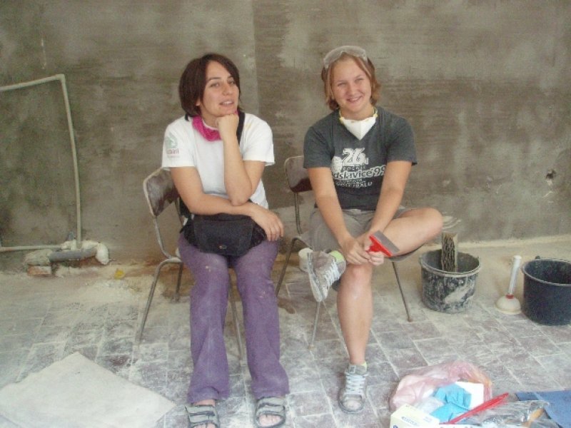 ními pokusy o upevnění kachliček na patřičná místa v dolních částech členitých stěn. Dívky se naopak vydávají na poněkud šetrnější dráhu nekonečných vyrovnávaček zvlněných, zvrásnělých zdí. Namíchat a nanést „rotband“ nebo tmel, vybrousit, vyhladit a tak stále dokola. V místnostech se postupně objevují nová plastová okna, osazují dveře a parapety. To se pochopitelně neobejde bez značného podílu zednických prací. Potřebný písek byl nedávno vytěžen v širokém řečišti nedaleko tekoucí Tisy. Aplikuje se i s kořínky a většími či menšími šutry. Najít vhodné síto se jeví jako nebetyčný problém. Nikdo si nestěžuje, naopak se zdá, že to všechny neskutečně baví. Práce je totiž, jak říkají Američané, největším dobrodružstvím. Zvláště tam, kde se díky jí pořád něco mění k lepšímu.
