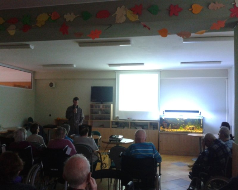 Přednášku pro ně připravil dobrovolník a vášnivý cestovatel Petr Škrabala. Senioři se vydali virtuální procházkou, která začínala v Praze, pokračovala přes Telč, Český Krumlov až po poslední památku zařazenou do seznamu UNESCO – židovskou čtvrť a baziliku sv. Prokopa v Třebíči. Senioři mohli shlédnout fotografie památek a dozvědět se o nich mnoho zajímavých informací.