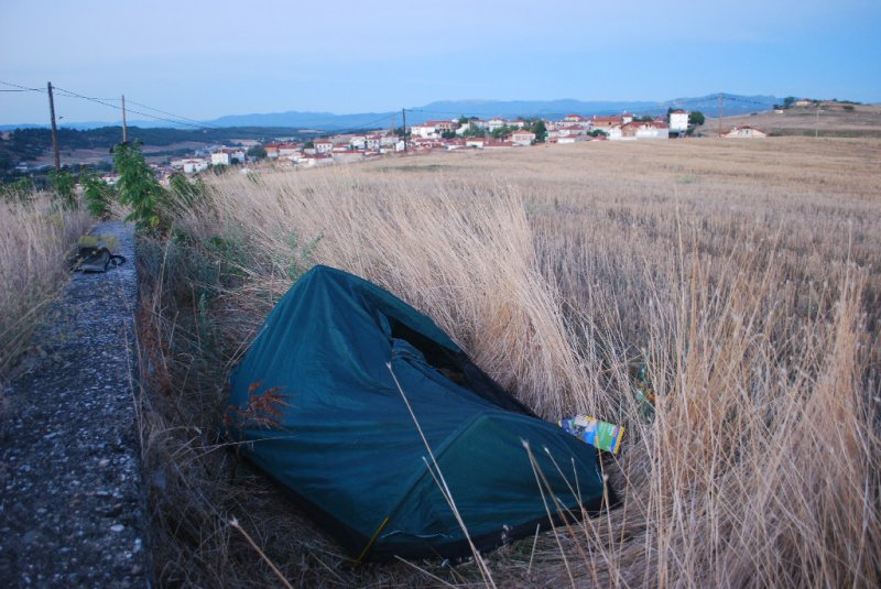 kilometrů na západ, do okresního města Grevena. Půlnočními ulicemi se protáhnu na nejbližší kopec a ve vysoké suché trávě na okraji strniště stavím svůj miniaturní stan. Samozřejmě úplně potmě. Až po zalehnutí zjišťuji, že vlastně ležím zpola na nepovláčené oranici a zpola v hluboké brázdě. První noc tak není dvakrát pohodlná.
