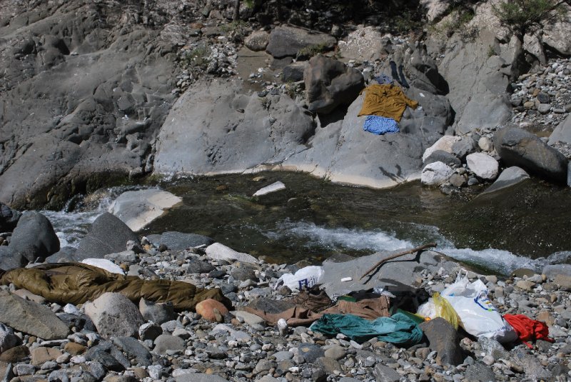 Shazuji krosnu z otlačených ramen, vzdávám se zapoceného odění a navštěvuji nejbližší z vodních prohlubní. Nádhera! Peru prádlo, rozvěšuji jej všude po okolí, stařecké tělo vystavuji hřejivým zlatým paprskům. Na plochý kámen si prostírám knacke brott, vegepaštiku s oloupaným česnekem, rajčata a hrozny. Dokáže si někdo představit slastnější chvíle? Není divu, že start do další etapy několikrát posunuji. Není co řešit, tři hodinky po proudu a jsem v Distratu. Mapa přece nelže.