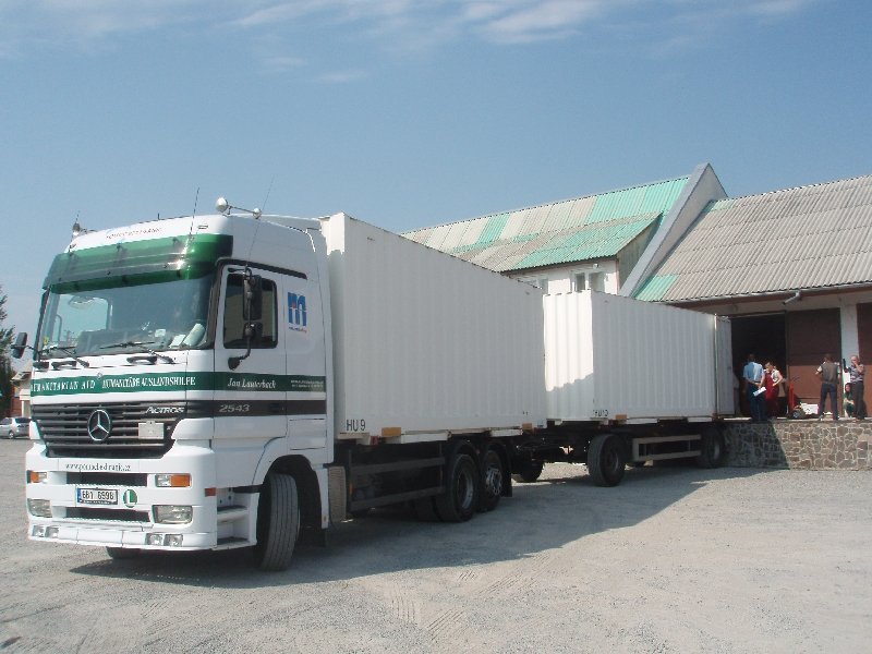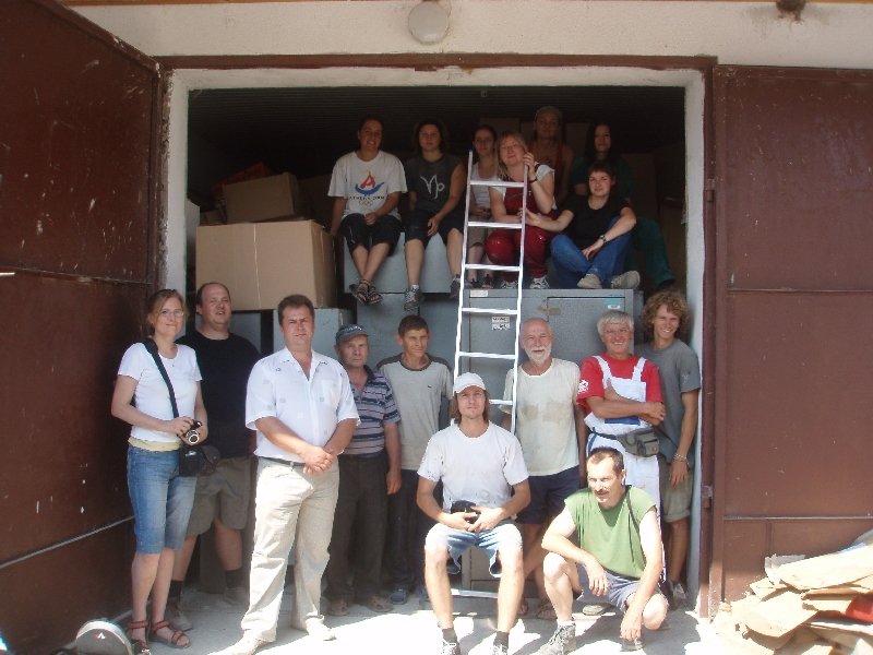 vyložit kamion s humanitární pomocí, rozvést humanitární dary