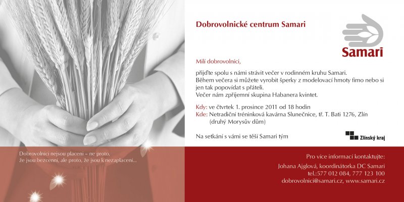 Jako tradičně uspořádá Samari u příležitosti Mezinárodní dne dobrovolníků Večer pro dobrovolníky.