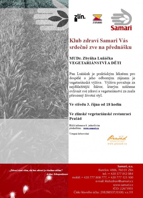 Nejen o vegetariánství, ale i o tom jak tato strava působí na vývoj dítěte si s námi do Klubu zdraví Samari přijde popovídat MUDr. Zbyněk Lunáček.